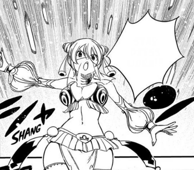 Ci-contre, image de Libra , esprit des clefs de Yukino de la guilde Sabeur Tooth dans Fairy Tail , Libra étant l’esprit de la Balance.